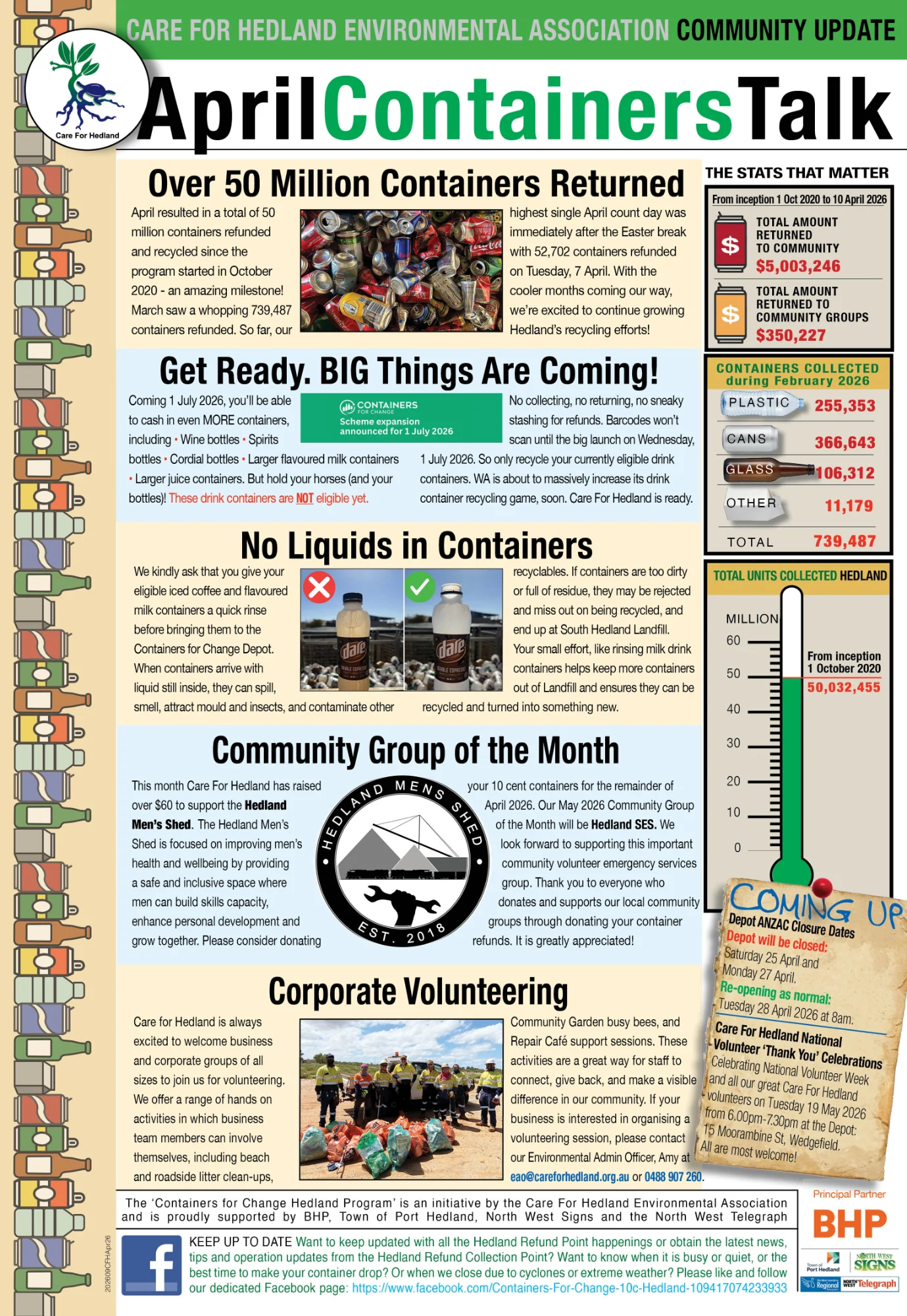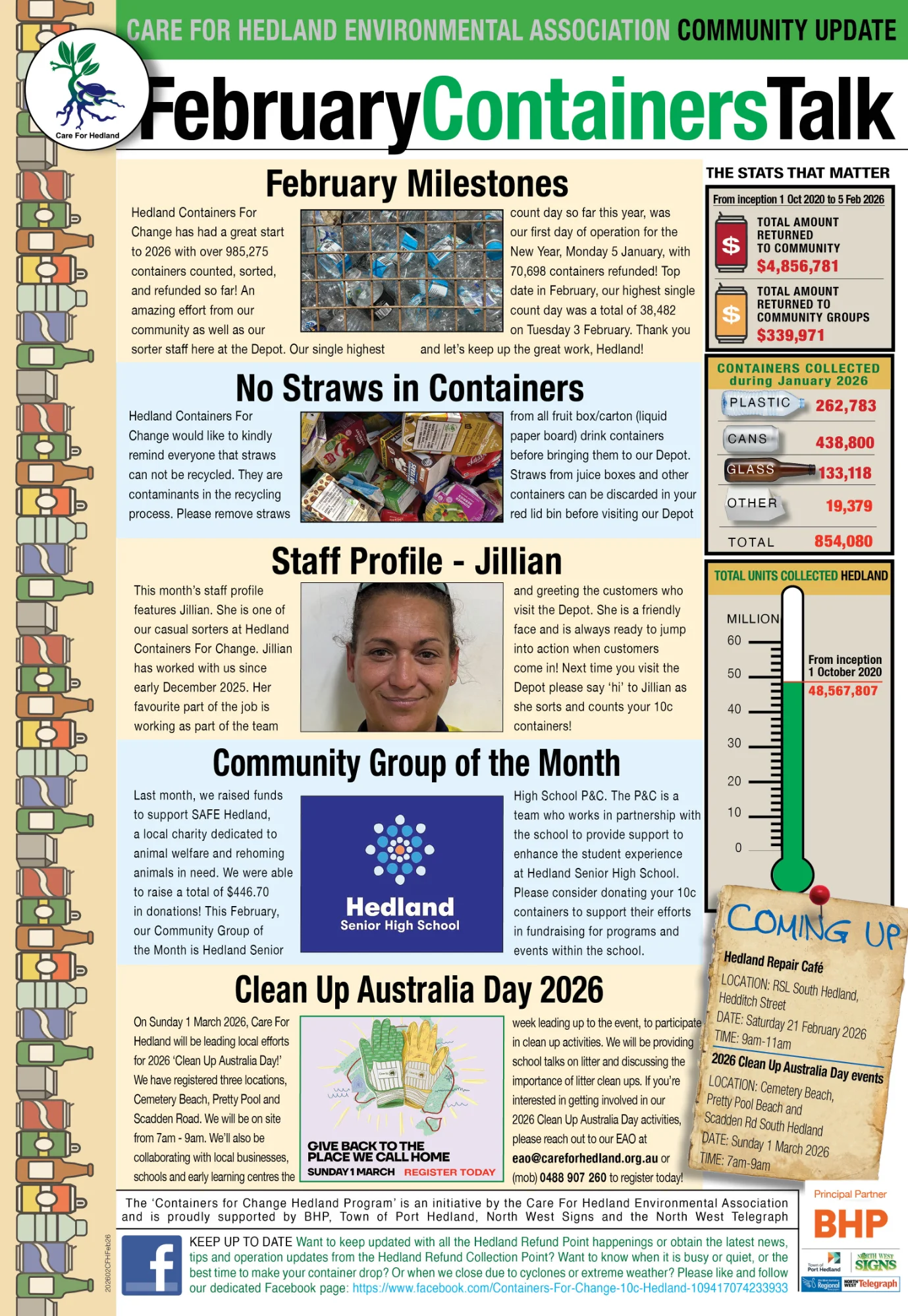 Care for Hedland operates are an Authorised Refund Point under the scheme, out of our Depot at 15 Moorambine Street, Wedgefield, WA 6721.