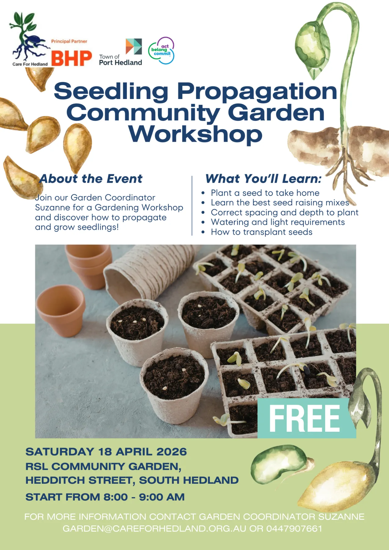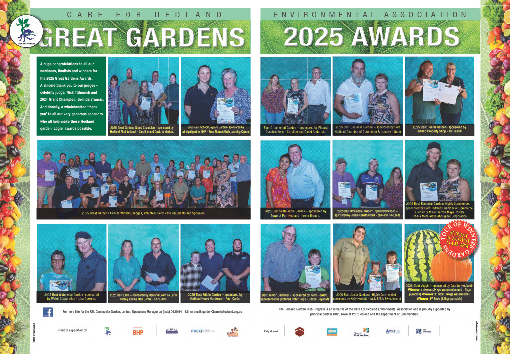 The Hedland Garden Club is for anyone with a passion for gardening and an interest in helping to make the local town a more vibrant place to live. Workshops and gardening-related events will be publicised on the events page as well as the Hedland Garden Facebook group and our weekly newsletter.