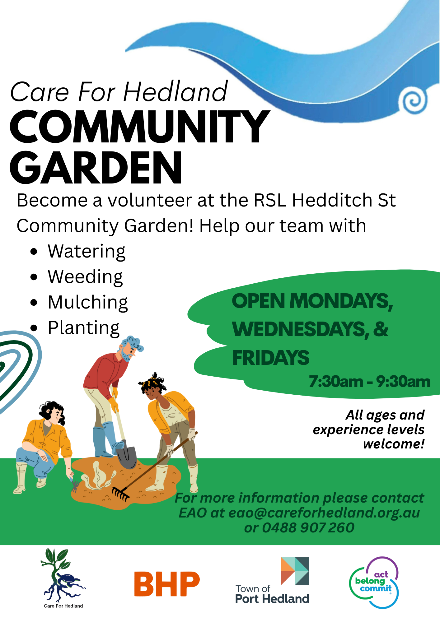 From October 2025 to February 2026 the RSL South Hedland Community Garden will be open: