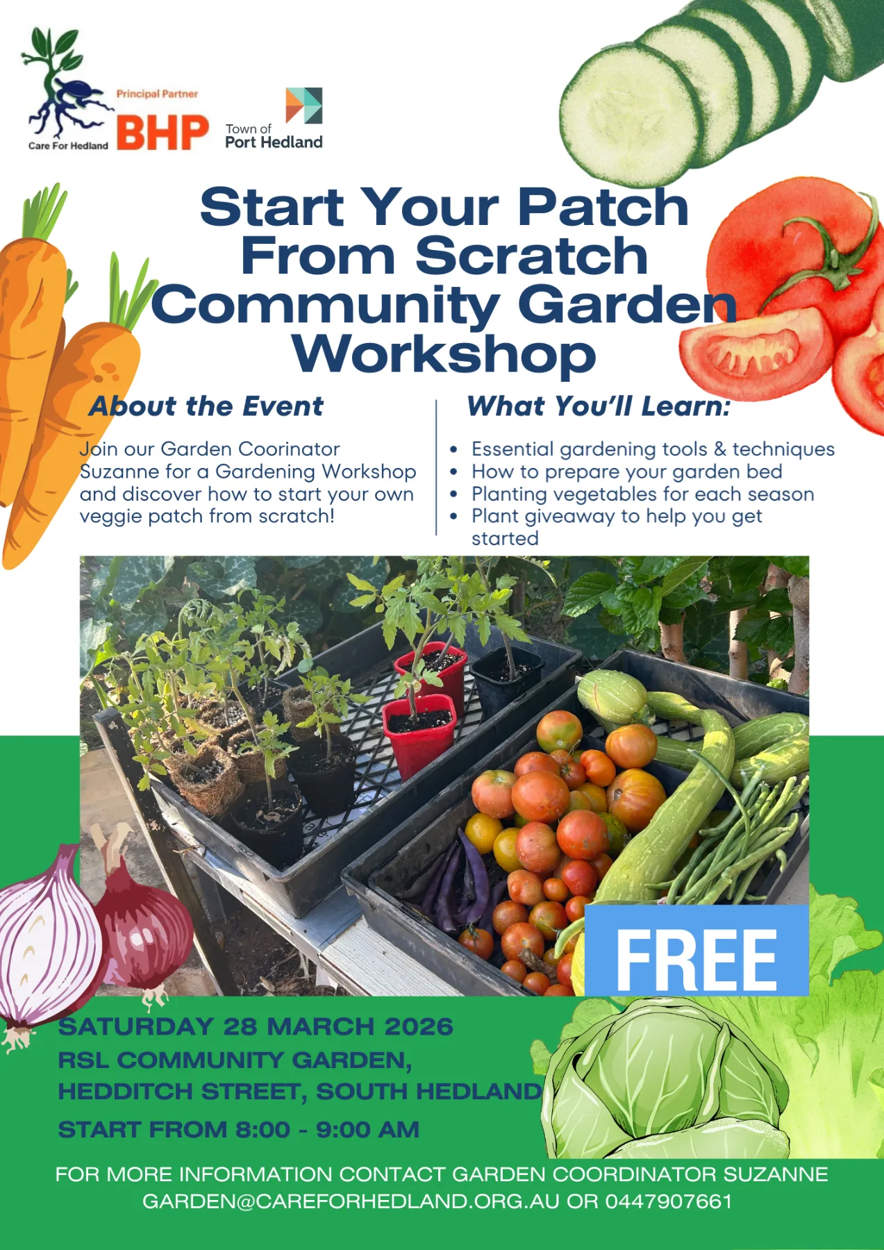From October 2025 to April 2026 the RSL South Hedland Community Garden will be open: