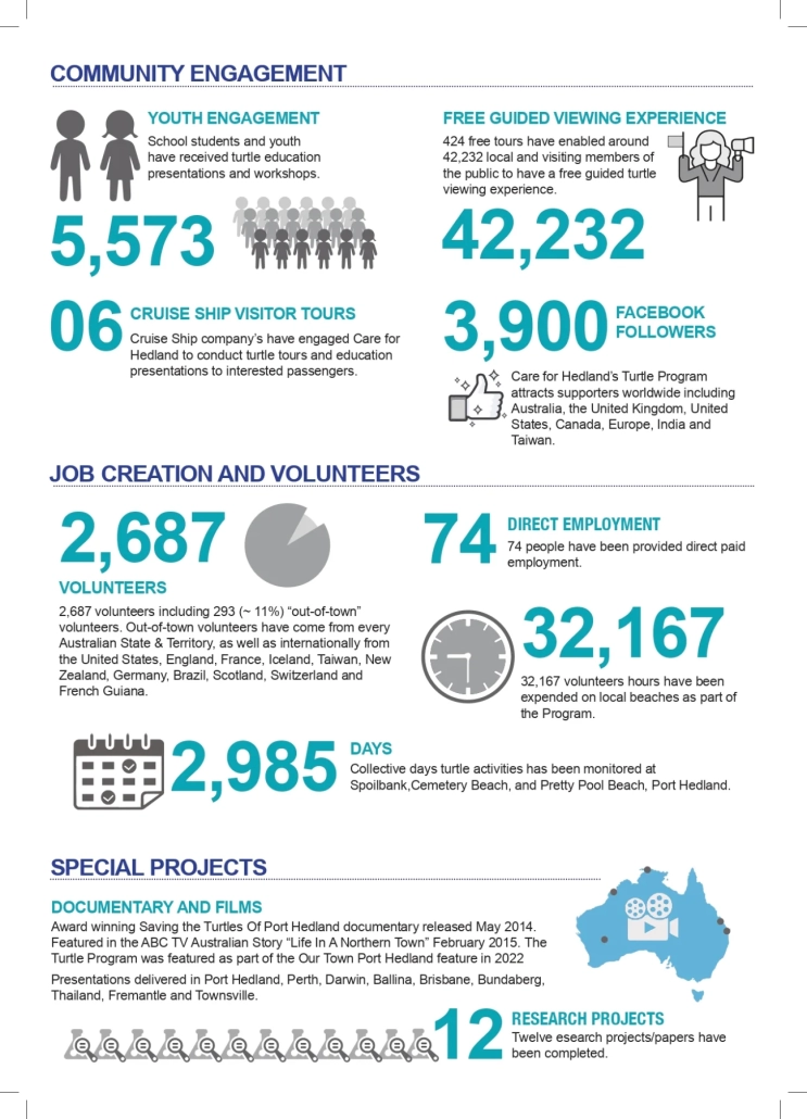 All Hedland residents are welcome to join our turtle monitoring program – even volunteering one morning a week is a huge help! Local volunteers can choose their own hours and days during the season. Complete the application form and send it through to eao@careforhedland.org.au.