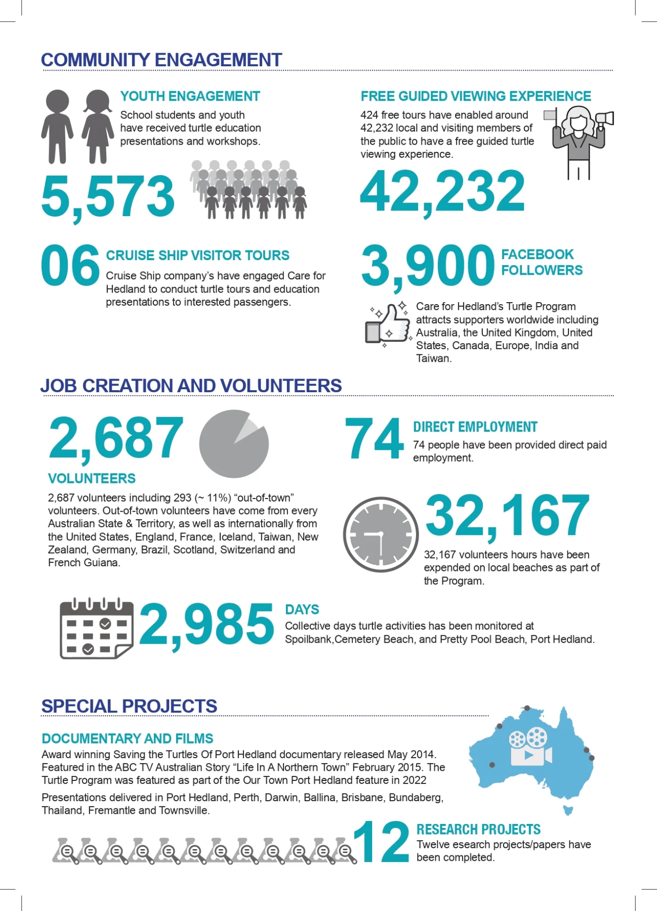 Care For Hedland relies on out-of-town volunteers for the turtle monitoring program and we encourage all to apply. For more information, see our Volunteer Information Pack 2025-2026 and email your completed Volunteer Application Form 2025-2026 to our Environmental Association Coordinator at coordinator@careforhedland.org.au.